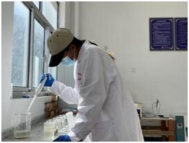 吉隆鎮(zhèn)污水處理廠化驗員在進水口、生化池、二沉池以及出水口四個點分別采集樣品。