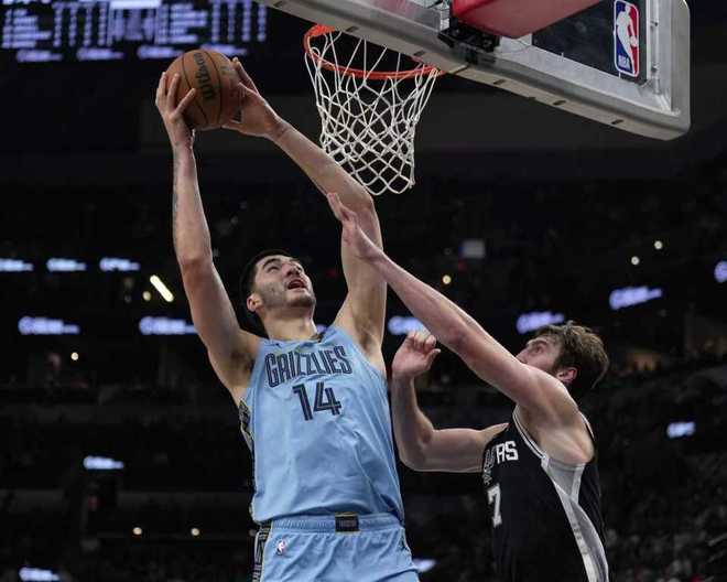 中場休息回來,雙方進(jìn)攻火力大幅提升,兩隊(duì)均是單節(jié)狂轟37+,且第三節(jié)合計(jì)狂轟77分。尚帕尼三分?jǐn)U大5分優(yōu)勢(shì),灰熊持續(xù)反撲追到60-60,馬刺繼續(xù)擴(kuò)大66-62領(lǐng)先。灰熊一波8-0攻勢(shì)反超比分,雙方繼續(xù)纏斗至馬刺86-82領(lǐng)先,灰熊連得5分奪回領(lǐng)先。馬刺單節(jié)37-40,三節(jié)結(jié)束馬刺86-87被灰熊反超1分。前三節(jié)比賽,福克斯20分引領(lǐng)馬刺4人得分上雙,賈倫18+6引領(lǐng)灰熊3人得分上雙。